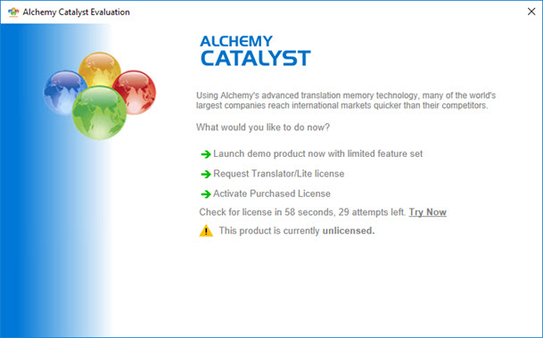 You have purchased a license of Alchemy CATALYST Developer/Pro, Localizer or Translator/Pro and now wish to activate your installation of the product.