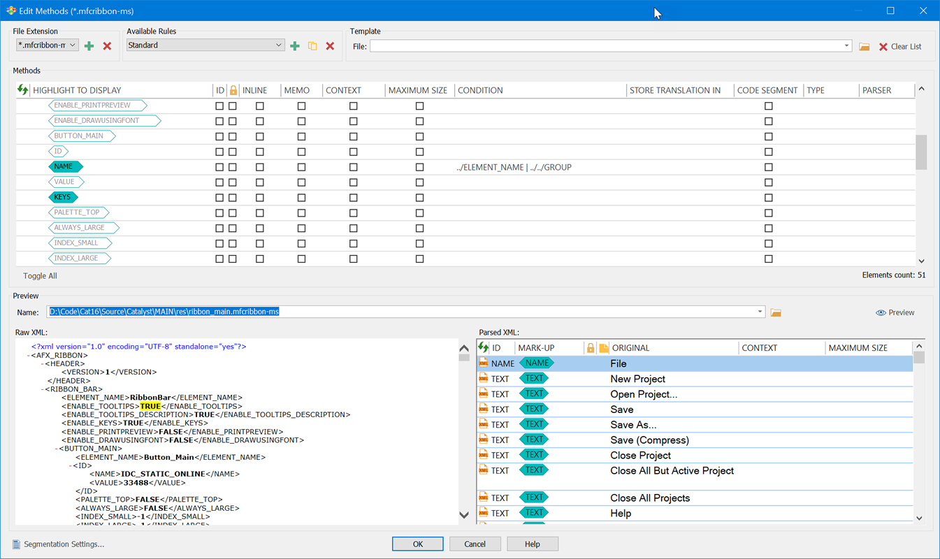 The CATALYST translation memory is an advanced system that remembers not only text translations but also the rich metadata that is associated with each segment.