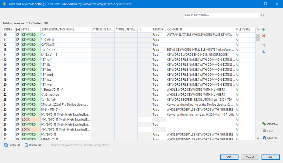 The management of Locks and Keywords is of paramount importance in CATALYST. The linguist doesn't have to guess what words to leave untouched.