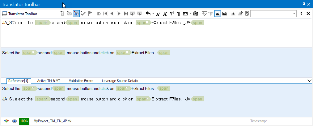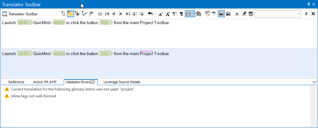 The Translator Toolbar is where quality human translations are crafted. Linguists have a great arsenal of tools at their disposal to ensure the best possible translations every time.