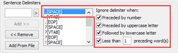 The delimiter can be refined further using the Ignore options associated. If you think of a sentence with an person's initial, the delimiter alone without the "Ignore when preceded by uppercase letter" would segment in the wrong place.