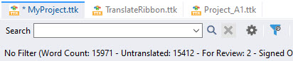 Filters are used to help quickly locate individual segments or groups of segments based on their Translation Status. This can be useful, for example, if you want to just view the untranslated segments within a Project TTK.
