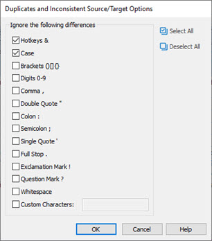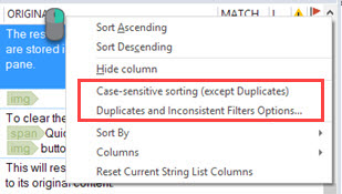 While using the Duplicates or Inconsistent filters, you may opt to ignore specific characters for Catalyst to compare the strings and add them to the filtered string list.