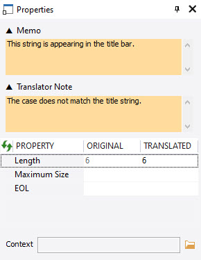 Each individual segments stored in a Project TTK may have additional properties. These can be set/reset using the Properties Window of the Translator Toolbar.