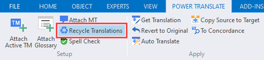 Recycled translations are turned on or off in the POWER TRANSLATE ribbon