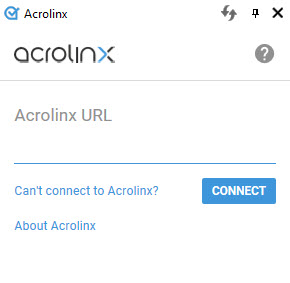 To start using Acrolinx Sidebar, enter your Acrolinx server address in the sidebar and click the CONNECT button.