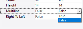 Multiline and Right To Left attributes values can be changed from TRUE to FALSE or vice versa. Click on the TRANSLATED value and selecting from the drop down. Example: