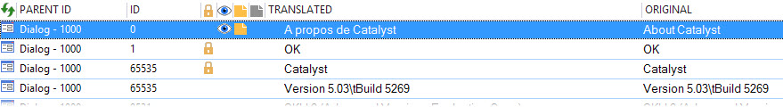 Locks prevent editing at the segment level. Apply locks by double clicking the Lock cell in the string list, or by choosing the segment and pressing the Lock button in the Translator Toolbar.