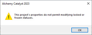 In the project properties, under Protected Properties, select the Prevent modifying locked or frozen status tick box. With this option selected, attempts to Lock or Unlock a string in the project will be denied with the following warning.