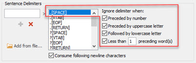 The delimiter can be refined further using the Ignore options associated. If you think of a sentence with an person's initial, the delimiter alone without the "Ignore when preceded by uppercase letter" would segment in the wrong place.