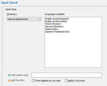 Hotkey (&) Aware: Enable this option to force the spell checker to ignore all hotkeys when checking spellings.