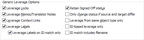 By default all text that is copied during a leverage operation is assigned the status ‘Leveraged’. However, if the copied translation is already marked as ‘Signed Off’, selecting this option will inherit this status in your newly leveraged TTK project file.