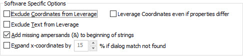 The Leverage and Update Experts can be configured to suit your specific requirements. For example, you may want to ignore all the coordinate information. Alternatively, you may only wish to re-use translations from the same objects types to improve the quality of your translations. The Options tab is used to configure the desired Leverage results.