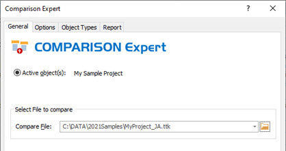 The Comparison Expert compares the current active TTK opened in CATALYST with the TTK project selected under Compare File below: