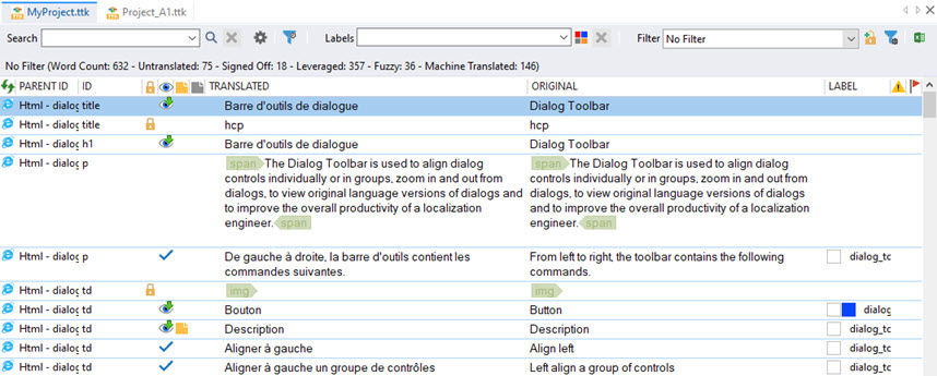 This displays only strings in an organised list. By default the strings will be sorted by the Parent Type |
