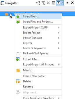 Files can now be inserted into the Project TTK and prepared for localization. To insert a file into a new or existing project: