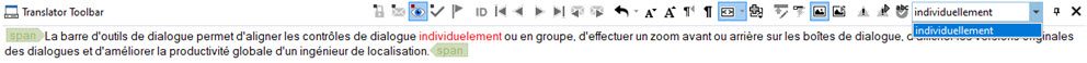 Suggested correct spelling for these words will appear in the drop down combo-box at the of the Translator Toolbar. Highlight an incorrectly spelt word and it can be replaced with a corrected one from this list.