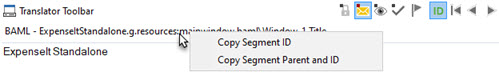 Use this button to display the Segment ID above the Translated text window. The displayed ID shows the PARENT ID \ ID information.