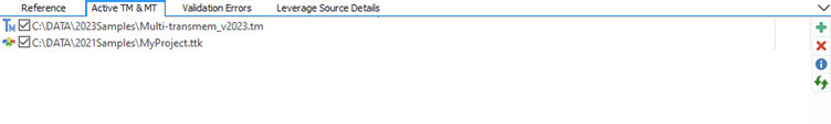 Add Active TM or MT: Click this button to add a new reference to your active list. |