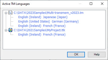 Click on the [i] button TM Information button to see more detailed information about Alchemy Desktop TMs in your Active TM list.