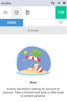 Once you have selected the profile, click the Acrolinx Check tab to start evaluating.