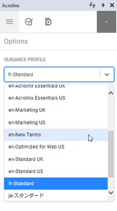 Go to Options to select the desired Guidance profile to use in evaluating your translations.